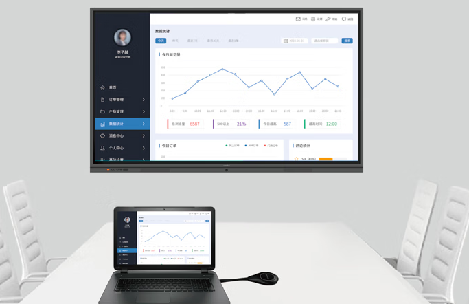 支持手机、投屏器、 airplay、软件等多种投屏方式,快速投屏至会议平板;最高支持四分屏显示,数据对比更清晰。支持反向触控,可根据内容讲解实时批注。